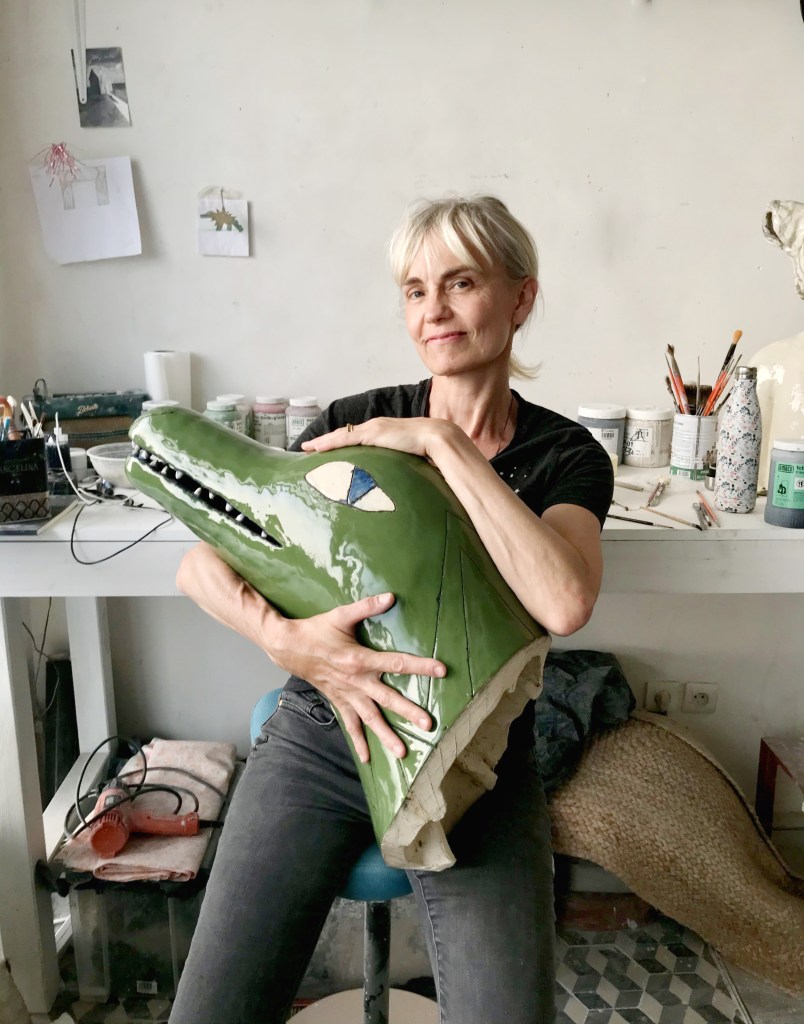 Dès son enfance, Clémentine de Chabaneix est baignée dans un écosystème de femmes où l’art et l’amour du vivant lui sont transmis. Avec sa soeur jumelle, elle est élevée par une mère comédienne dotée d’un fort caractère et d’une liberté également héritée. L’artiste se souvient d’un voyage au Brésil, d’impressions puissantes d’un vivant aussi flamboyant que mystique. “J’ai des souvenirs de serpents qui mangent des cochons, de nous qui jouons dans les sables mouvants, d’une grand-mère qui me vaudou-ise sur la table de sa cuisine.” Un héritage artistique également reçu de ses grands-parents, Claude et François Xavier Lalanne, dont l’univers à la fois sculpté et animalier, trouve de fortes résonances au sein de sa pratique. Elle se souvient des week-ends passés chez eux, réveillée par le martèlement du métal, vivant dans une grande liberté et dans l’observation constante du jardin. Elle est impressionnée par l’engagement total de ses grands-parents envers leur travail qui occupe une place centrale dans la famille. Un engagement qui la motive à son tour envers la céramique.